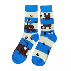 2438027, Blauw/Ecru, 71% Katoen - 26% Nylon - 3% Elastan, 71% Katoen - 26% Nylon - 3% Elas, Blauwe sokken met hondjes en pootafdrukken, , , 38-454.5,