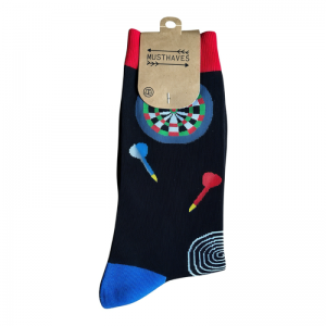 2512043, Zwart, 71% Katoen - 26% Nylon - 3% Elastan, 71% Katoen - 26% Nylon - 3% Elas, Zwarte sokken met dartborden en pijltjes, , , 38-454.5,